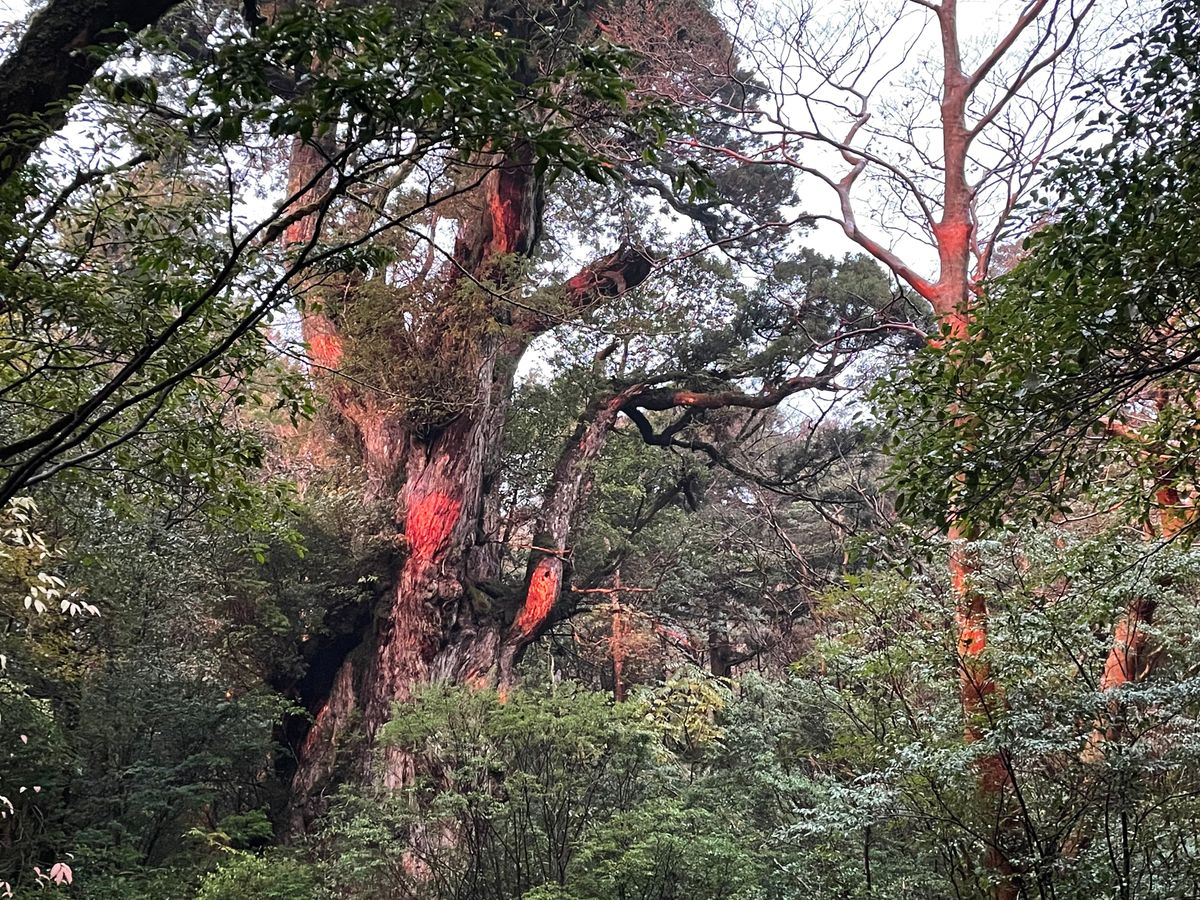 翌日も朝早くから暖かい食事を提供してくださり、前日とは打って変わって気持ちの良い晴れ!真っ赤に染まる縄文杉を見ることができました。前日雨で見かけなかった鹿の家族、猿の家族にも何度か出会えて、本当に満足でした!!