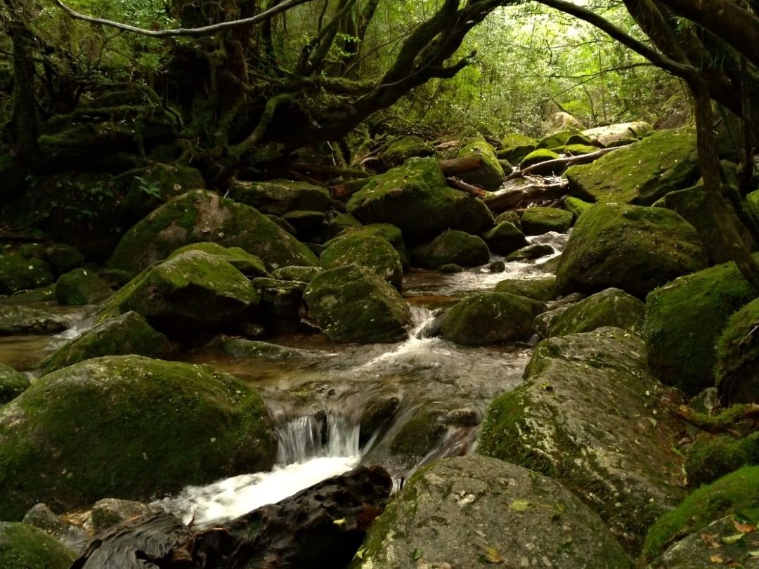 小雨の屋久島は苔が生き生きとし、沢や川の流れ、おサルさんやシカさんが我々を出迎えてくれようですね。