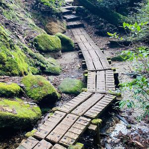 ・16:45頃:苔むす森に到着。日が落ちる前に絶対に見ないといけないスポットに間に合うことができてホッとしますが、ここからペースが下がると暗い山道を下る必要が出てくるということで急いで下り再開です。