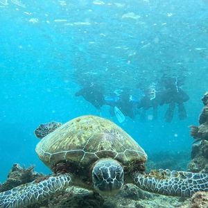 幸運にも海ガメに出会い一緒に泳ぐ事ができ最高の時間でした。