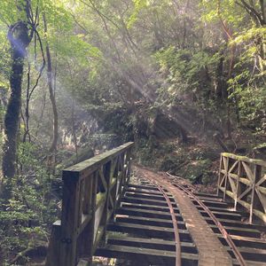 長いトロッコ道。高所恐怖症には過酷な橋も何とか渡り、想像していたとおりの澄んで潤った空気を感じながら、長く単調な道もガイドさんの見どころの説明や、安全配慮のお陰でトロッコ終点に無事に到着することができました。