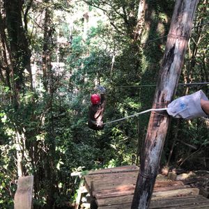 予約当日、飛行機が欠航し、行けなくなってしまいましたが、快く日時変更に応じてくれました。レンタカーがなくても、バス停の原入口まで迎えにきてくれます。キャノッピウォークは木の上に渡された板の上を歩いていくので、高所恐怖症の方はちょっと大変かもしれません。しかし、怖い怖いと言いながら、ときどき出てくるユニークな説明を読んだり、願いを込めた木を投げ入れたりする仕掛けも楽しく、とても楽しめました。ジップラインは初めてでドキドキしましたが、説明もとてもわかりやすく、木の間を滑走するのはとても爽快で、ジップラインだけもう一度やりたいと思ったくらいでした。運動神経の鈍い私でも楽しめたので、小学生でも楽しめると思います。
