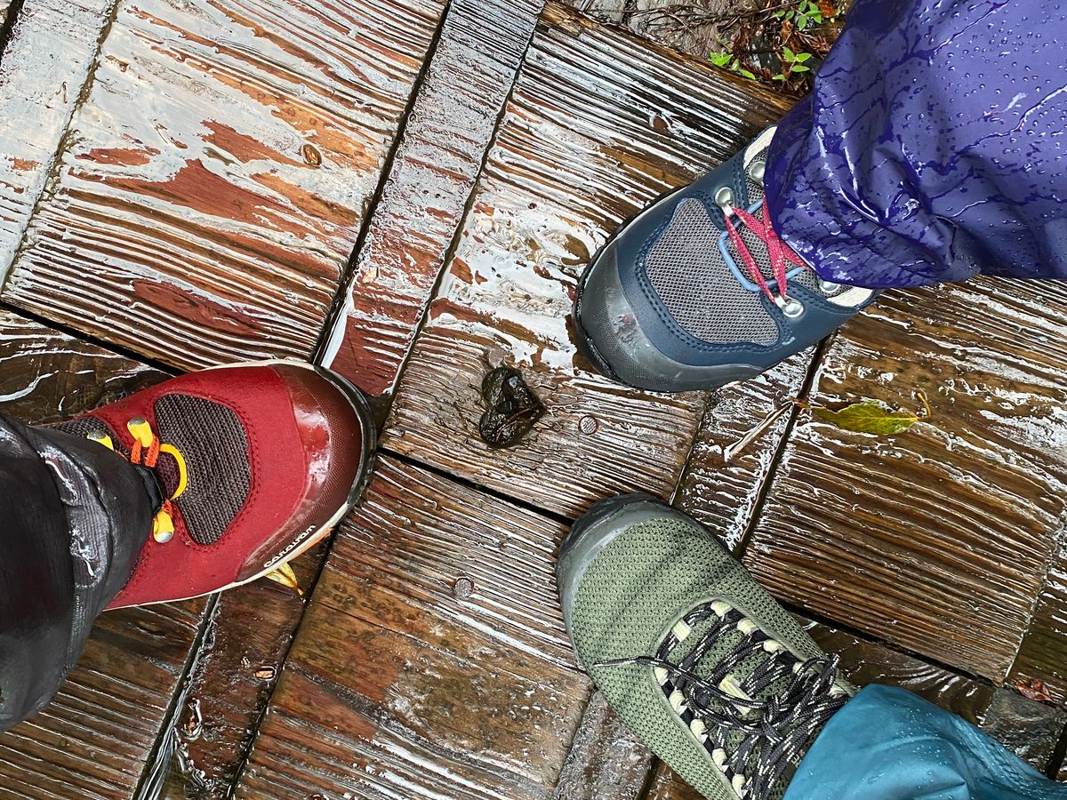 白谷雲水峡では、通常のスニーカの方もいらっしゃいましたが、雨の時はトレッキングシューズをおすすめします(レンタルで十分です)。とても快適でした。
