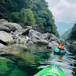個人的に海より、リバーカヤックの方がおすすめです。透明な川水で、両側は山と滝の絶景。