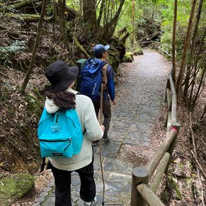 年齢合わせて120歳の夫婦で参加しました。二人とも元気な方ですが、初めてのトレッキングで不安もあったのでヤクスギランドの150分コースから80分コースに変更して歩きました。ヤクスギラントの中は比較的整備されており、天候にも恵まれ最高でしたが天候によっては油断できないところもありました。ガイドの方が植物や石など自然の見方を丁寧にお話ししてくださり、自然を満喫しました。