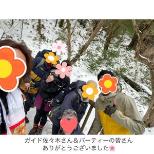 普段はオフィスワーク・登山初心者なのでツアー前は体力が不安でしたが、佐々木さんの休憩を挟みながらのペース配分と途中雪が残っていて滑りやすかった際に靴底スパイクを貸していただいたおかげで怪我なく無事辿り着けました。