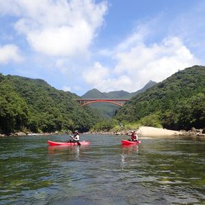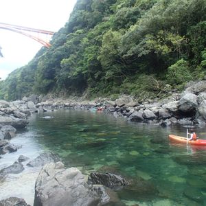 初心者の夫婦二人で参加しました。ガツガツと漕ぐこともなく、のんびりと川を滑り出し、思ったより遠くまで漕いで行くことができました。偶然、お猿さんを見かけ、こんなとこでとびっくりしました。このツアーでは写真撮影サービスがあって、ガイドさんについでにお猿さんを撮って頂きました。また、天気もよく、川に浸かり簡単なハゼ釣りも体験したり、火照った足も川の冷たさで心地良かったです。静かな渓谷を満喫でき、本当にいい経験をさせて頂きました。