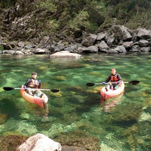 初めての人でも登山で疲れていてもゆったりとした時間を過ごしてもらえるのが安房川のリバーカヤックの良いところ♪