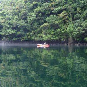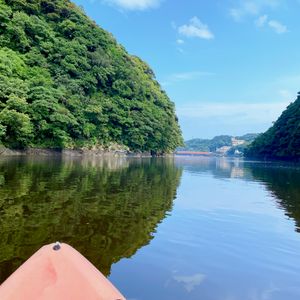 雨予報でしたが幸い晴れ間もあり、キラキラ光る照葉樹や水面を見ながら涼しくカヤックを楽しめました。蝶やサワガニ、猿にも会えました!