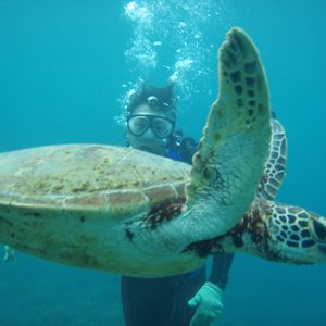 夫婦共に初めてのスキューバを体験しました。説明も分かりやすく、ガイドさんも気さくだったので、キンチョーせずに臨めました。ウミガメと一緒に泳げたし、アッとゆう間に時間が過ぎましたー