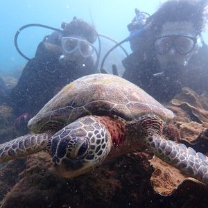 初めてのダイビングでしたがウミガメちゃん2匹と会うことができました。他にも魚の群れやカクレクマノミを見ることができ、写真や動画も綺麗に撮影していただけるので満足です。是非また利用したいです!