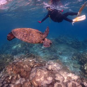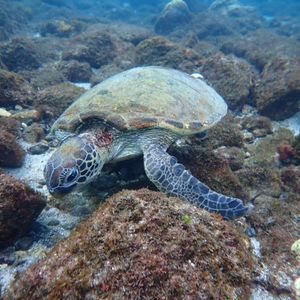 ウミガメにも2匹会えて、人を怖がらずかなり近づけました。