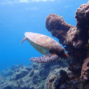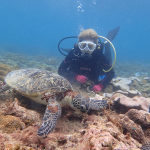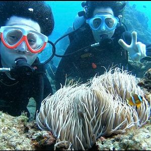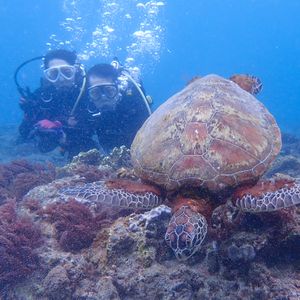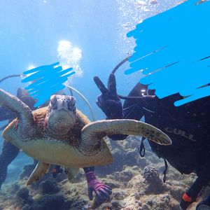 ダイビング未経験だったので少し緊張していましたが、インストラクターさんが気さくに、丁寧にレクチャーしてくださり、始まってみればとても楽しくてあっという間に時間が過ぎてしまいました。クマノミやきれいな魚たちにも癒されて、会えたらいいなくらいに思っていたウミガメには3頭も会えました!水中の写真もたくさん撮っていただけるのでとてもおすすめです。(ウミガメとツーショットが撮れて嬉しかったです!)こちらの体験に申し込んで本当に良かったなと思います。ありがとうございました!