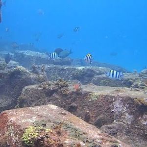 ダイビングが始まるとまずは浅瀬での訓練になりますが、呼吸法や待つ時の姿勢など2人組の私たちに交互に付きっきりになってくれたのが嬉しいです。ダイビング中も本当に高い頻度でこちらを振り向いてくれたので安心して泳げました。水中でのコミュニケーションはジェスチャーの他に磁気のお絵かきボードを使って文字を書いてくれたのも分かりやすかったです。水中でGoProを使って動画や写真を撮影、メールにて無料でくれたのも良いサービスだったとおまいます。