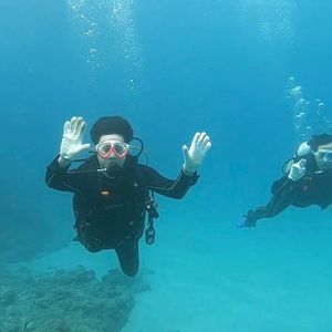 はじめてのダイビングだったので2回ダイビングができるプレミアムコースを選択、1回目のダイビングでははじめは全然うまくいかなかったですが、熱く丁寧に基本から教えていただき、上達することができ、2回目では1回目よりも安定して、リラックスしてダイビングができました。ウミガメも2匹も見つけていただき、あんなに長い時間ウミガメと一緒に泳げたのは本当に思い出に残りました!写真や動画も沢山撮って下さりありがとうございました。今後もダイビングをやりたいと思いました。