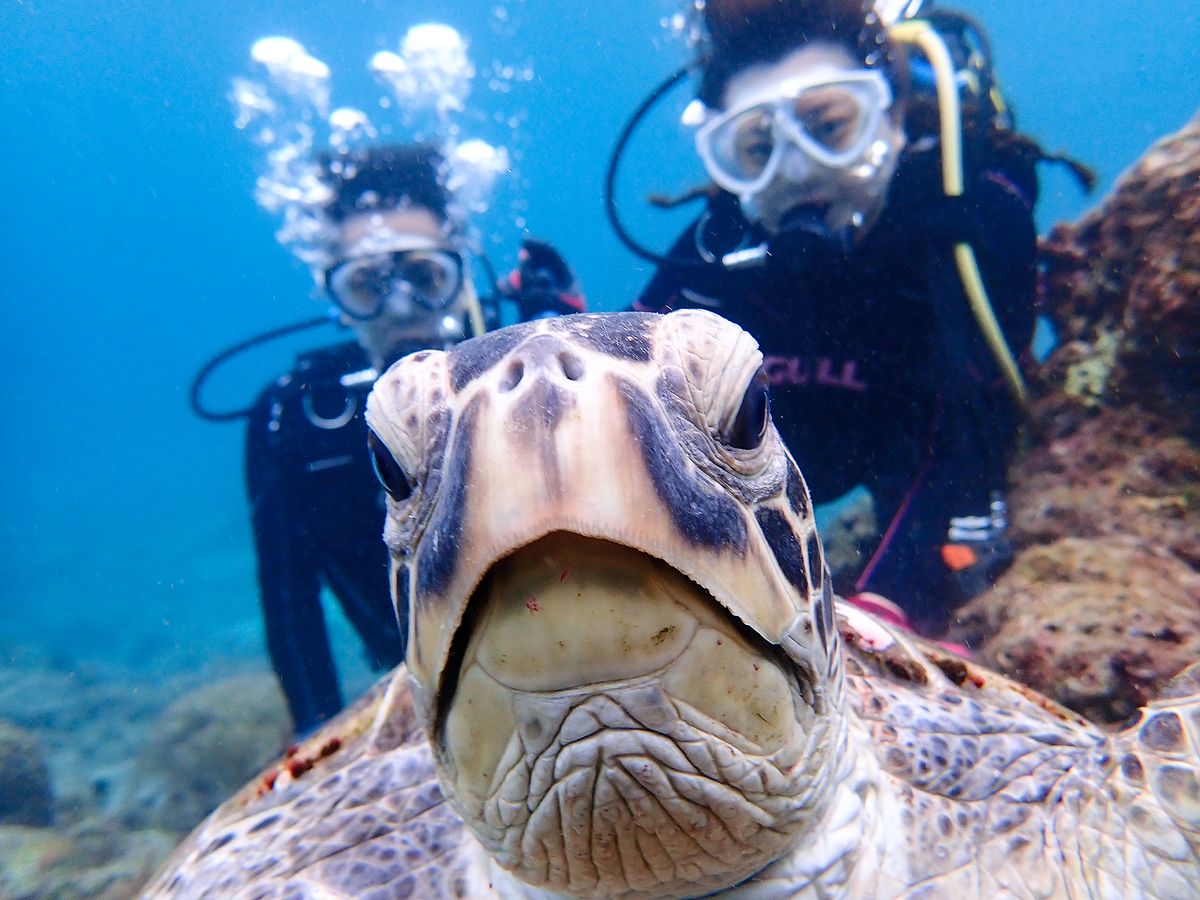 初めてのダイビングで不安でしたが、丁寧にご指導頂きウミガメも見ることが出来ました!