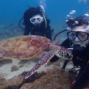 2回目の体験ダイビングで初めは不安でしたが、基礎からしっかりと丁寧に教えていただき、安心して潜ることができました。その日の海のコンディションにより最適な方法をご提案してくれて、念願のウミガメと一緒に泳ぐことができました!写真や動画もたくさん撮っていただき大大大満足です!最高に楽しくて、屋久島での1番の思い出です!ぜひまた利用したいです!