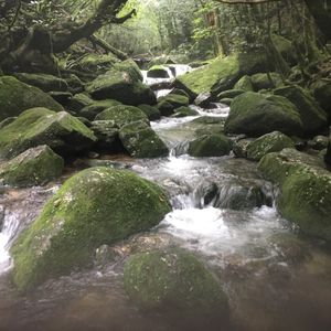 とにかく急な「石」の段を1つ1つ踏みしめて登っていきます。平坦な道、土オンリーの道はほぼありません。足元をずっと見てないと落ちそうなので「次はどの石を踏もう」と集中しました!汗だく、びしょ濡れで結構きつかったのですが、あっという間に苔むす森着。森と水の美しさ、マイナスイオンはハンパじゃないです。苔むす森では、ボーっとしていつまでも眺めていられる感じです。水もそのまま飲めます。☆星1つ減らしたのは、事前の持ち物リストに「長袖」とありましたが、軽く登山なので汗だくになり半袖でもよかったこと。(ガイドの人は半袖でした)「お菓子(軽食)」とありましたが、苔むす森以外は休憩ないし座るとこもないので食べるきっかけないです。あとは、足元見て歩くので景色を堪能できず、途中途中もう少し立ち止まれる時間があったらなと思いました。半日だから仕方ないのでしょう。時間があれば、ぜひとも1日使って行くべしと思いました。屋久島は、シカやサルの自然の姿そのままを見れるのは感動します。一生に一度は訪れる価値ありです。ちなみにご利益があり、私たちの便から船も飛行機も