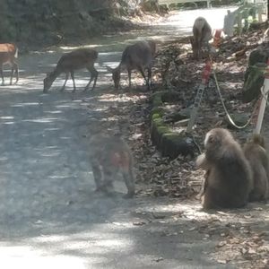 クルマは、新しく、中も綺麗で臭いなどもなくとても乗りやすかったです。西部林道近くまだ行ったら、小雨にも関わらず、ヤクザルの一グループ6匹ほど。ヤクジカも7頭いて、屋久島初めての友人は、めちゃくちゃよろこんでました。