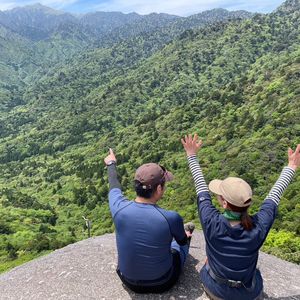 4月30日〜5月1日に夫婦で屋久島ガイド山好きの池田さんのガイドで宮之浦岳〜縄文杉〜白谷雲水峡の縦走一泊二日キャンプツアーに参加しました。昨年9月に結婚35周年の記念にと予定していたのですが台風が直撃してやむ無く断念したので今年こそはとリベンジの気持ちでした。初日は登山開始こそ雨も止み時折り晴れ間も見える天候でしたが途中から雨風とも強くなりとても寒くて大変でした。それでも池田さんとの楽しい会話や案内のお陰で無事に登頂できました。宮之浦岳山頂からの景色は最高でした。その夜の山小屋での池田さん手作りの豚の生姜焼きと炊き立てご飯は身も心も温まりました。三岳のお湯割りに鯖節とチーズのクラッカーも相性がぴったりで最高でした。翌日は4時に山小屋を出発して縄文杉を目指しましたが天気にも恵まれ朝焼けでオレンジ色に輝く縄文杉を間近に見られてとても感動しました。太鼓岩での景色も絶景で疲れも吹っ飛びました。白谷雲水峡の神秘的な苔の世界にも魅せられ本当に感動的でした。ガイドの池田さんとツアーをご一緒した女性の方も気さくな方で本当に楽しくて感動の二日間でした。