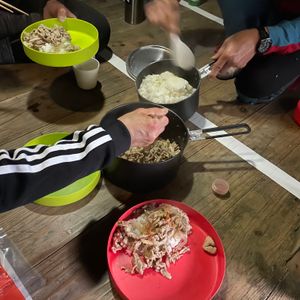 避難小屋での夕食は1泊2日ツアーの醍醐味ですね。みんなで囲む食事は本当に美味しいですね。