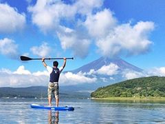 都心から約90分で行くことができる、大自然に囲まれた山中湖でSUP体験。SUPはサーフボードより大きく安定感のある専用ボードに立ち、パドルを漕いで進むマリンスポーツです。壮大な富士を望みながら水上散歩をしたり、横になって空を見上げボーっと過ごすのもオススメです。富士山を望む穏やかな湖面で流れる時間を,ご堪能ください。
