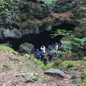 樹海をゆっくりトレッキングからの天然記念物の風穴探検。