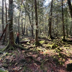 友達の勧めで家族4人で参加しました。当初、暗いイメージからか、私以外は皆、乗り気ではありませんでしたが、樹海に足を踏み入れた瞬間から、目の前に広がる世界に全員が引き込まれていきました。木漏れ日を浴びながら、刻々と変化する多種多様な菌類の生態や漆黒の闇を体験できる氷穴の歴史。知識豊かなガイドさんの分かりやすい説明でより深く理解できたように思います。お陰さまで心地よい筋肉痛をお土産に家族皆、心身ともに黄泉がえり?いえいえ蘇り、笑顔で帰路につきました。今度はぜひ別の季節に伺いたいです。どうもありがとうございました。