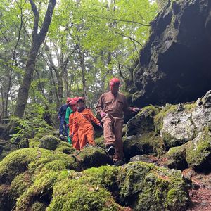 ガイドのめっしーさんが知識豊富で最高に楽しい方で、森や植物、洞窟のことなどをわかりやすく説明して頂きながら樹海と真っ暗で寒くてまた歴史のある洞窟を冒険することが出来ました。小学4年生と2年生の息子と参加しましたが、子供達の目線で色々とフォローして頂き、また素敵な写真もたくさん撮って頂きました!大人も子供も満足のツアーでした⭐︎