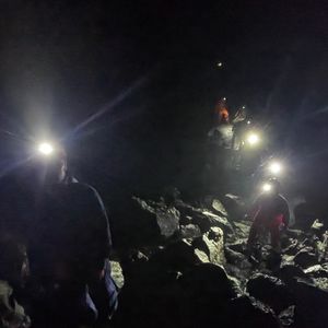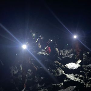 正に冒険で、ヘッドライトの光を頼りにゴツゴツした岩の上を進んで行きます。