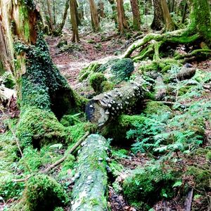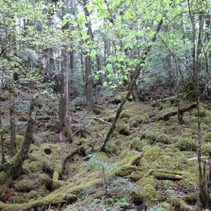 樹海は各種苔に覆われていて緑いっぱいな森でした。