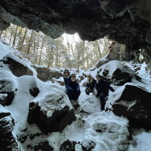 青木ヶ原樹海を歩いたことも立て続けに洞窟に潜ることもしたことがなかったので、とても楽しかったです。天気はいまいちで雪もふったので、とても寒くはなりましたが、ガイドさんがとても気を使ってくれ、また雨の方が洞窟内部もキラキラしていて、特別な感じがしました。