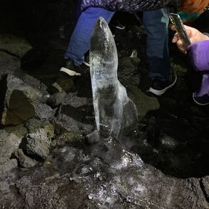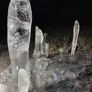 参加した日は寒くて雨が降っていたのですが、外気と洞窟内の気温差がほとんどなく。風がないぶん洞窟の方が暖かく感じました。また雨が少ない日が続いていたので洞窟内も雨水が滴ることなく歩きやすかったです。そして氷筍がたくさんあり、透明度が高くとても透き通ったきれいな氷筍を見ることが出来て感動しました!