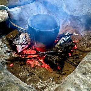 火起こし、黒曜石での調理、土器での煮込み料理。