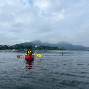初めてのカヌー経験だったのですが、ガイドさんが付かず離れずガイドしてくれ、運動音痴の私でも少しオーラを左右に漕ぐだけでカヌーが綺麗にまっすぐ進むので、すぐに自分達がしたい速度で操縦できます!宿泊先からおっきめのリュックサックや荷物を持って行ったのですがすべてガイドさんが乗ってきた大きいワゴン車にすべて置いて置かせていただき、携帯とお財布だけもってボートに乗車しました!早朝プランで利用したのですが、早朝は風が弱く波が立たないのですごく綺麗に水面に浮かぶ逆さ富士が観れました!!(まじで早起きしてよかったです!!)(船上中他のボートも少ないので水飛沫が立つこともなく服や持ち物が濡れることもなかったです!!絶対早朝プランがおすすめです!!)