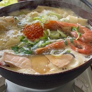 カニ、エビ、鮭、イクラが使われた海鮮ほうとうは美味しかったのですが、海鮮の鮮度はあまり良くなかったです。
