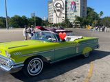 ドライバーさんとガイドさんと共に、可愛いグリーンのオープンカーでハバナの街を巡りました。