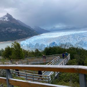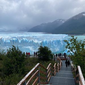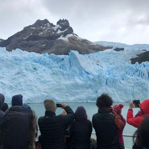 予定時間より15〜20程遅れてきた迎えのバスに乗り、まずは国立公園入口で入場料(45000アルゼンチンペソ)を別途支払い。展望の良い場所で一時下車して暫し撮影タイム。その後、ボートに乗船して氷河を見学。カメラや動画に収めるのは難しいので、ひたすら氷河をキョロキョロすると必ず崩落見れます。小さな崩落もチラホラ。崩落大2回、小5回程見れました。英語もスペイン語も分からないけれど、ガイドの女性は終始元気一杯で笑顔の素敵な方でした。2時間程与えられる自由時間では遊歩道のイエローラインからブルーラインへ。ブルーラインは船から見た方向と同じでした。レッドラインは船とは逆の向きなので、どちらを選ぶかはご自身で。1時間程で天気が急変して雨が降って来たので急いで集合場所に戻りましたが、その後また陽の差す空が戻って来ました。天候変わりやすく、風が吹くとかなり寒いです。手袋とマフラー必須です。ランチは散策中にベンチで取りました。バス下車&集合場所(クラブハウス的な所)でも食事出来ます。帰りは希望すればメインストリートで降ろしてもらえます。