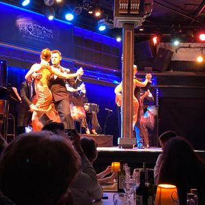 食事が終わると隣のビルにあるタンゲリーアに移動。用意されていた席はステージすぐ前のまさに'かぶりつき'の席で、オーケストラをバックにオーソドックスなタンゴだけでなく現代的に演出されたものもあり見ごたえあり、そしてその迫力に十分堪能した。