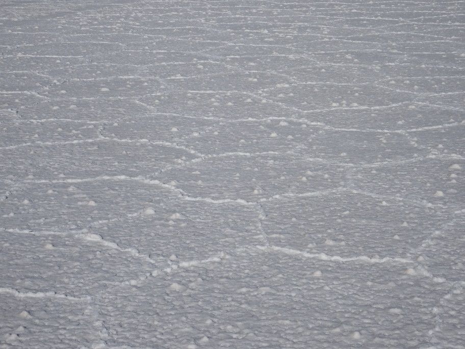 昼には塩が結晶となってきれいな六角形の模様を描く大平原。