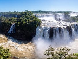 観光はブラジル側のボートツアーから始まりました。トイレで、持参した水着とビーチサンダルに着替えて、荷物はガイドさんの車に置いてボートに乗り込みました。バケツの水を頭からかぶるような状態でずぶ濡れになりましたが、滝の迫力を存分に感じられます。... 続きを読む