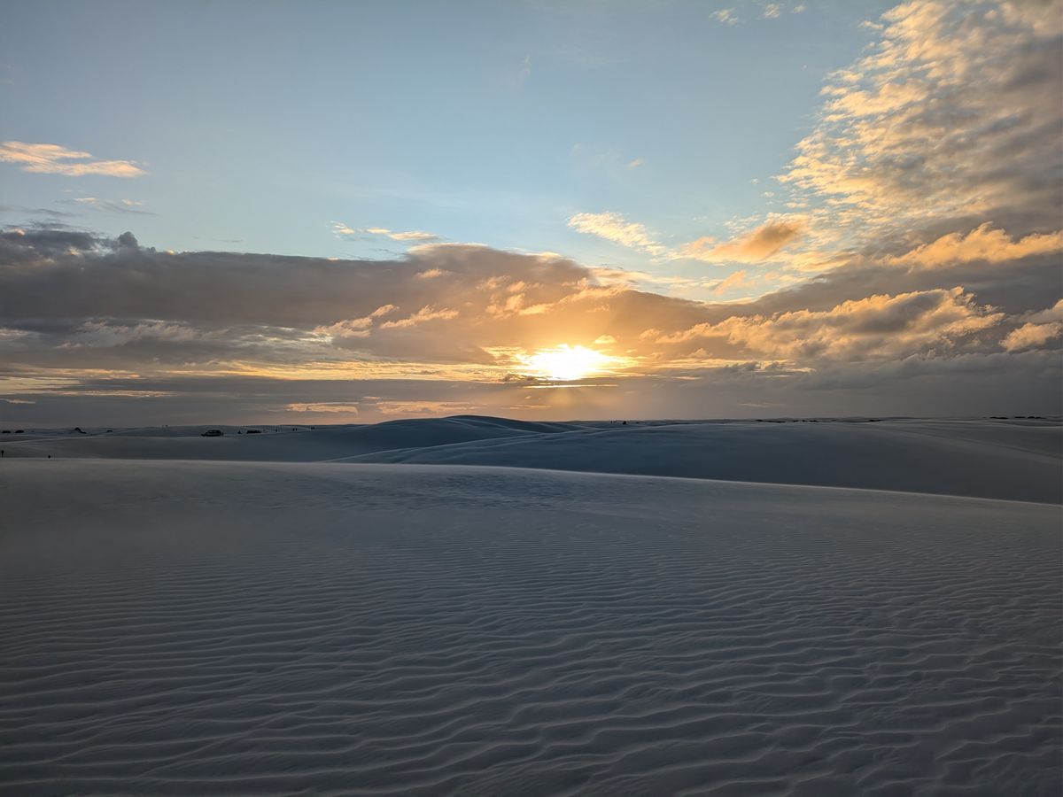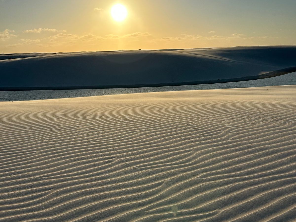 ハイライトとなる午後からの大レンソイスでは文字通り息をのむ絶景でした。序盤の日が高い時間帯は白砂と水の青さのコントラストが非常に美しく、その情景が彼方まで続く様は同じ地球とは思えないほどでした。リョーマさんが途中、我々家族の写真を撮ってくださり、後からデータを共有してくださります。もちろん砂丘にできる湖の中で泳ぐこともでき、水温も少し暖かいぐらいで泳ぐのにちょうどよかったです。入口に近い湖のラーゴボニータを中心に過ごしましたが、リョーマさんが人の少ない所に連れて行ってくださり、写真撮影などもしやすいです。最後に高台へ移動し、砂丘の向こうに沈む夕日を眺めてツアー終了となります。帰りは同じくジープでバヘイリーニャスに戻り、ホテルや指定のレストラン前などで解散となります。