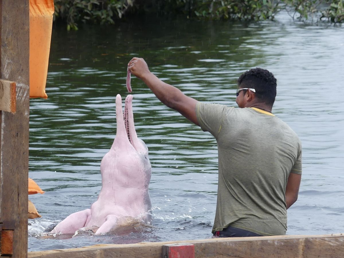 まずネグロ川ソリモインス川の合流地点へ。イルカを見れました。VELTRAの説明では「ピンクイルカと泳ぐことも可能です」とありましたが・・・この大河のど真ん中で、有り得ません。