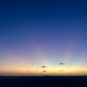 夕日が落ちていく頃に放射状の光が出てきて、それだけでも綺麗で驚きましたが、陽が落ちた直後の空の色がオーロラのように美しく、初めての経験に感動しました!