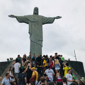 日曜日なので結構な列になっていますが、我々はツアーの優先チケットだったので、ほとんど並ばずに乗ることができました。キリスト像は想像より大きく、霧がかかっていて神々しかったです。