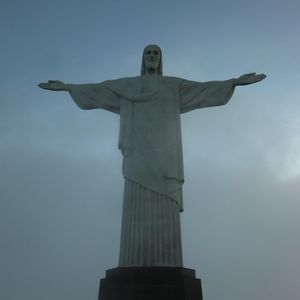ホテルフロントでピックアップ、大型バスでロープウェイの乗り場に向かいました。キリスト像のある頂上は標高約700mで途中から濃霧で、キリスト像および市内の景色が全く見えなくなりました。