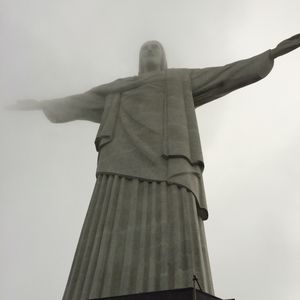 午前中は晴れ渡った青空でしたが、コルコバードの丘に到着した時は雲に覆われていました。