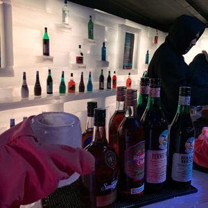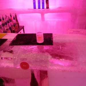 アイスバーはグループごとの入れ替え制で防寒着を借りて入場、20分くらいの飲み時間で、ビールやジントニック数杯を同じ氷のグラスで飲んでたら最後にはグラスに穴があきました。