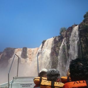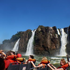 初日のオプションで、ボートで滝の下まで行くツアーもとった。ボートには20人ほどが乗れる。どちら側からのツアーでもこのオプションは提示される。日本円で4,500円程度。水の落ちるすぐそばまでいってくれる。時には水がどっとボートの中に入ってくる。ポンチョを着ていてもずぶぬれになる。特に下半身。大きな防水袋を乗る前に貸してくれるので靴も含めて濡れてはまずいものはその中に入れれば大丈夫。着替えも持っていったほうが良い。