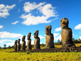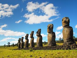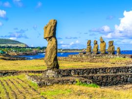 13時頃にイースター島に到着後、15時からツアーに参加することができるので、効率的でした。メインはアフ・アキビの7体のモアイです。空の青と芝生の緑によく映えて、神聖な雰囲気が漂っていました。